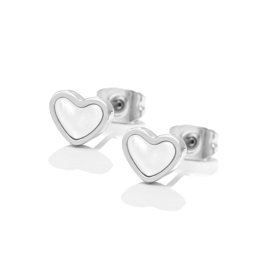 Arete Acero en Baño de Oro Blanco Amor Puro