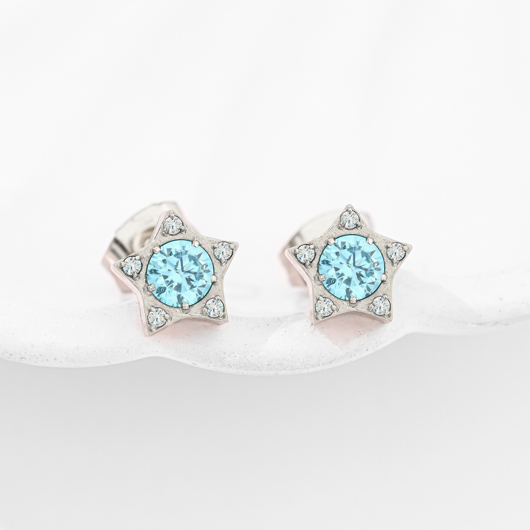 Arete Acero en Baño de Oro Blanco Estrella Turquesa