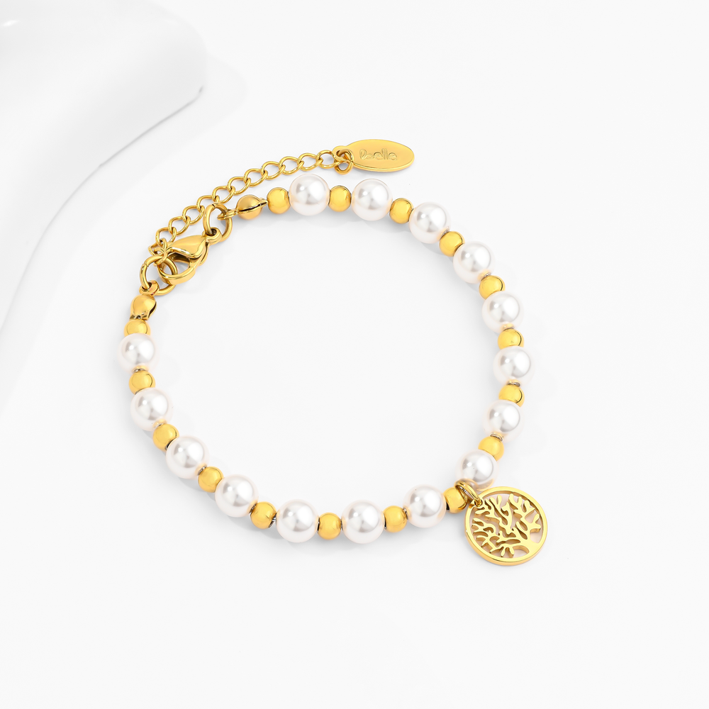 Pulsera Acero en Baño de Oro Blanco Trébol
