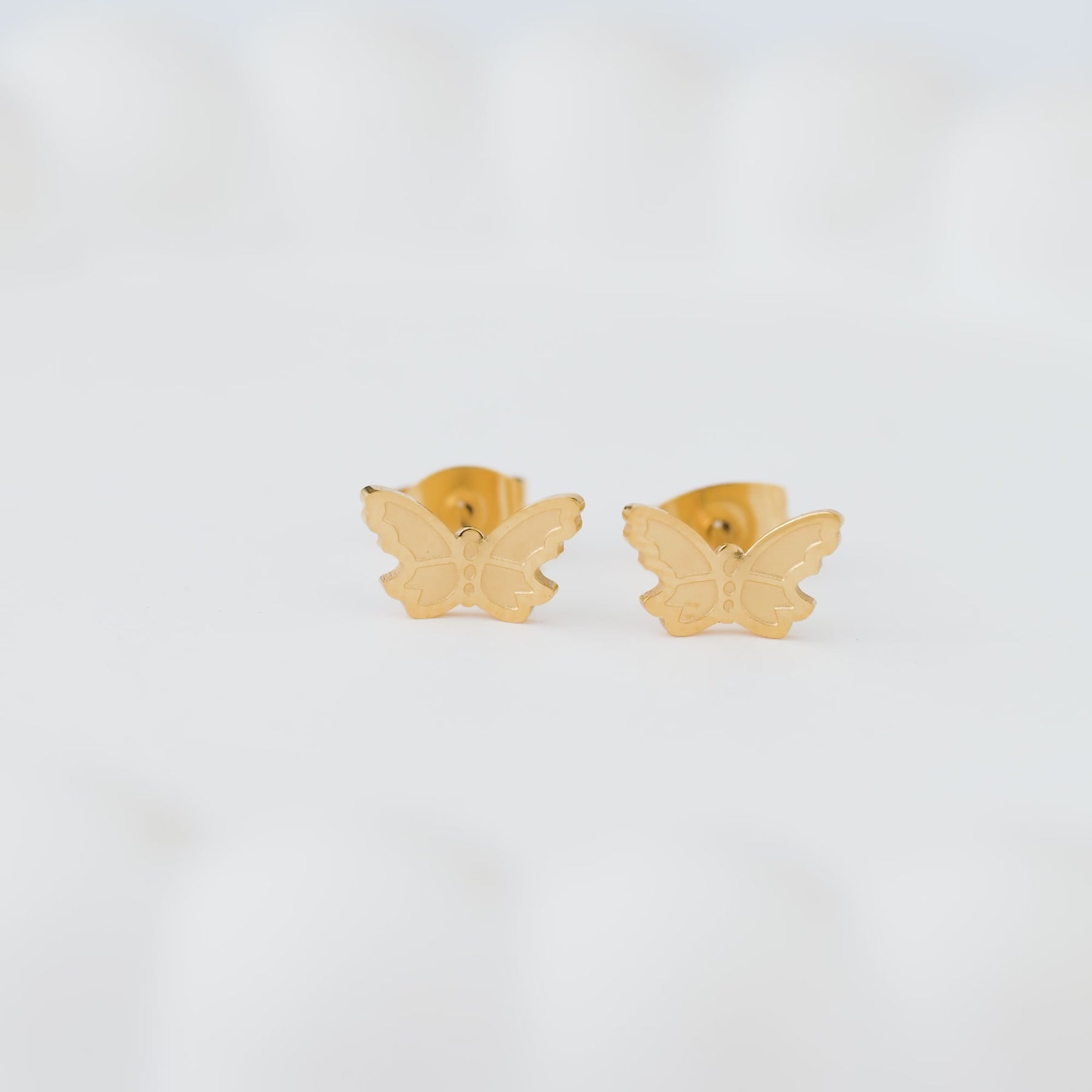 Aretes confeccionados en acero quirúrgico 316L con baño en oro de 18 quilates, diseñados con motivo de mariposa. Este material hipoalergénico es ideal para pieles sensibles, ofreciendo durabilidad y resistencia a la corrosión. El baño en oro proporciona un brillo elegante y sofisticado que complementa cualquier look. Perfectos para uso diario o eventos especiales, estos aretes combinan calidad premium con un diseño versátil y atemporal.