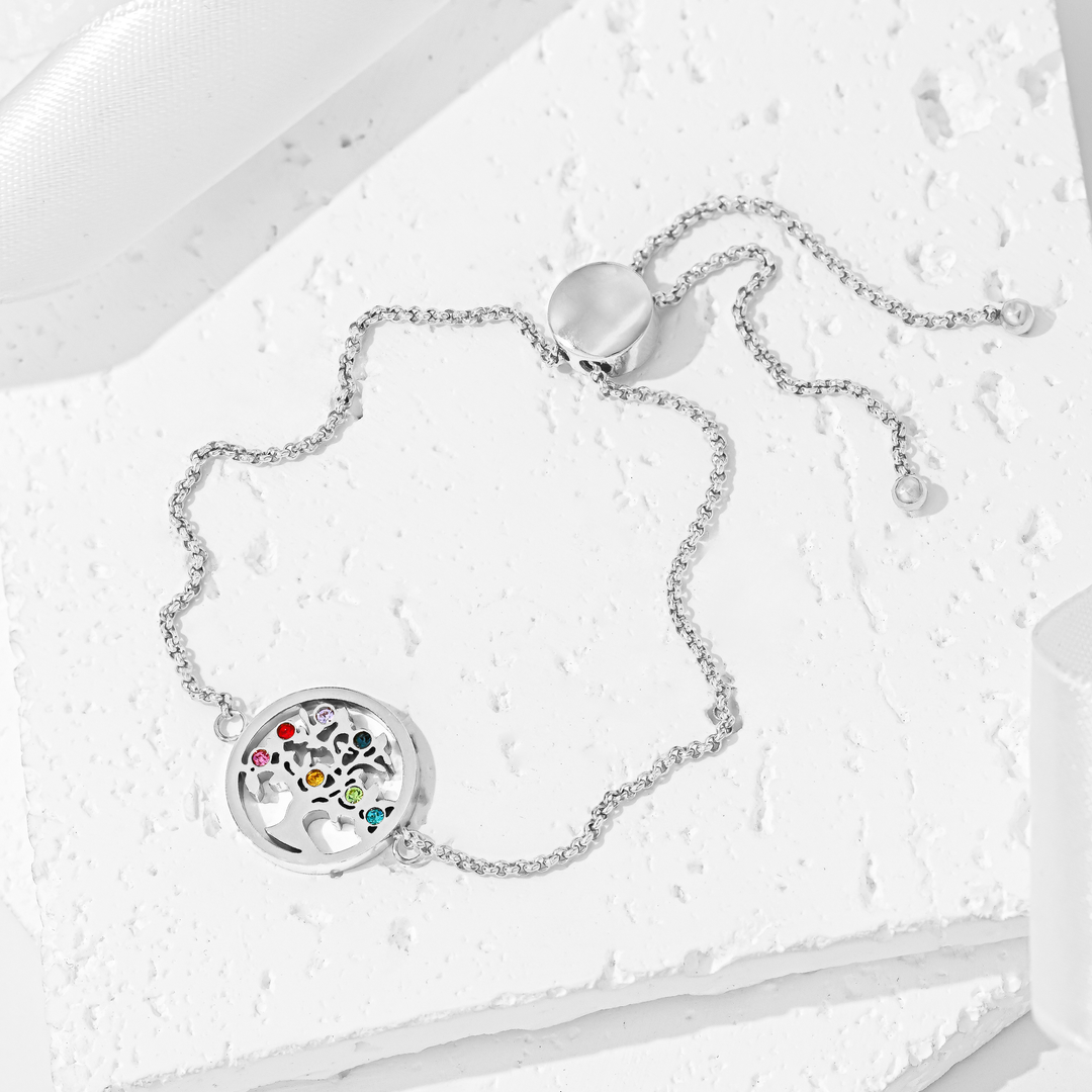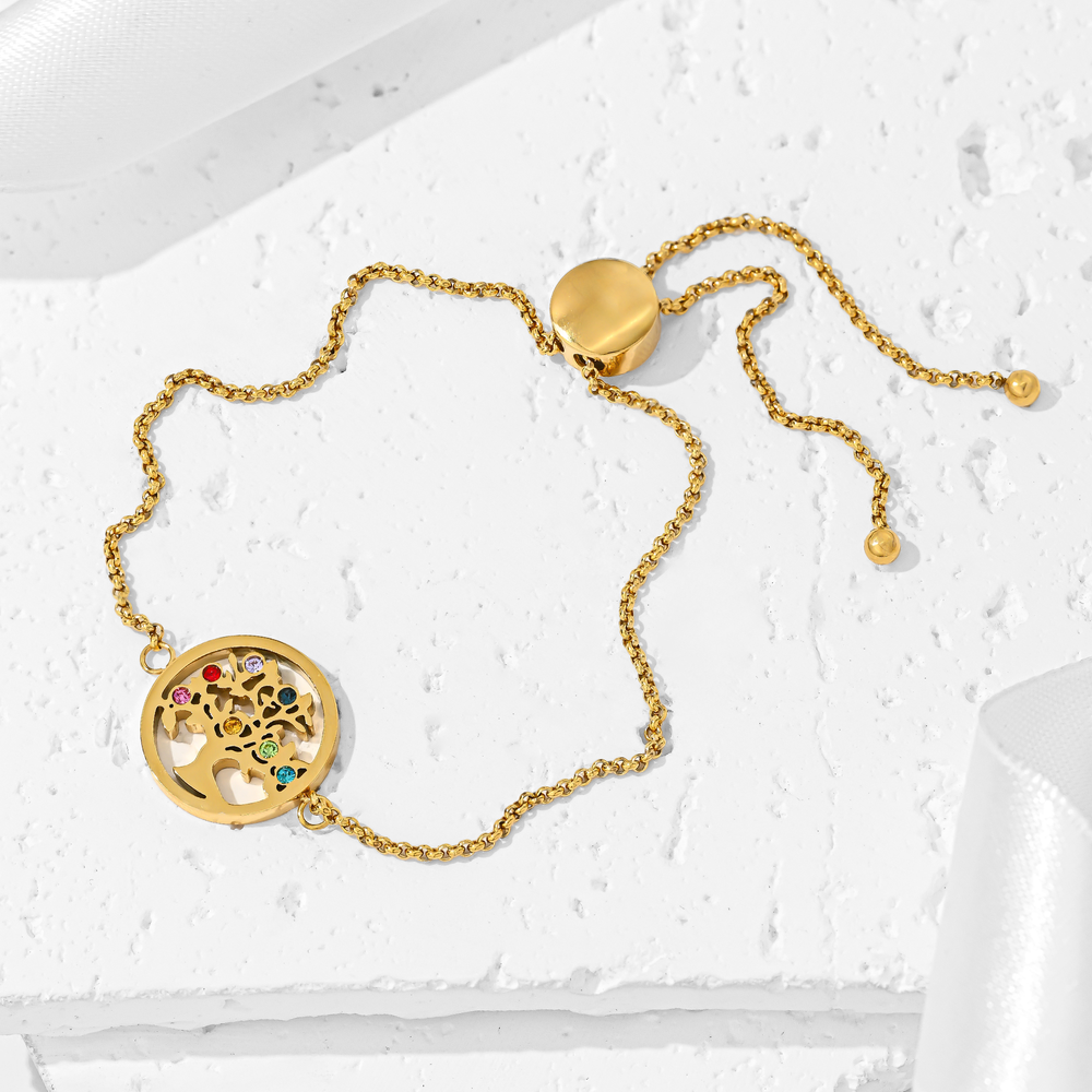 Pulsera Acero en Baño de Oro Blanco Árbol Colores