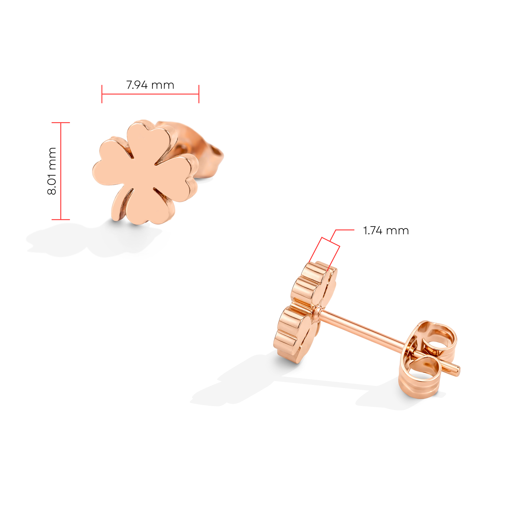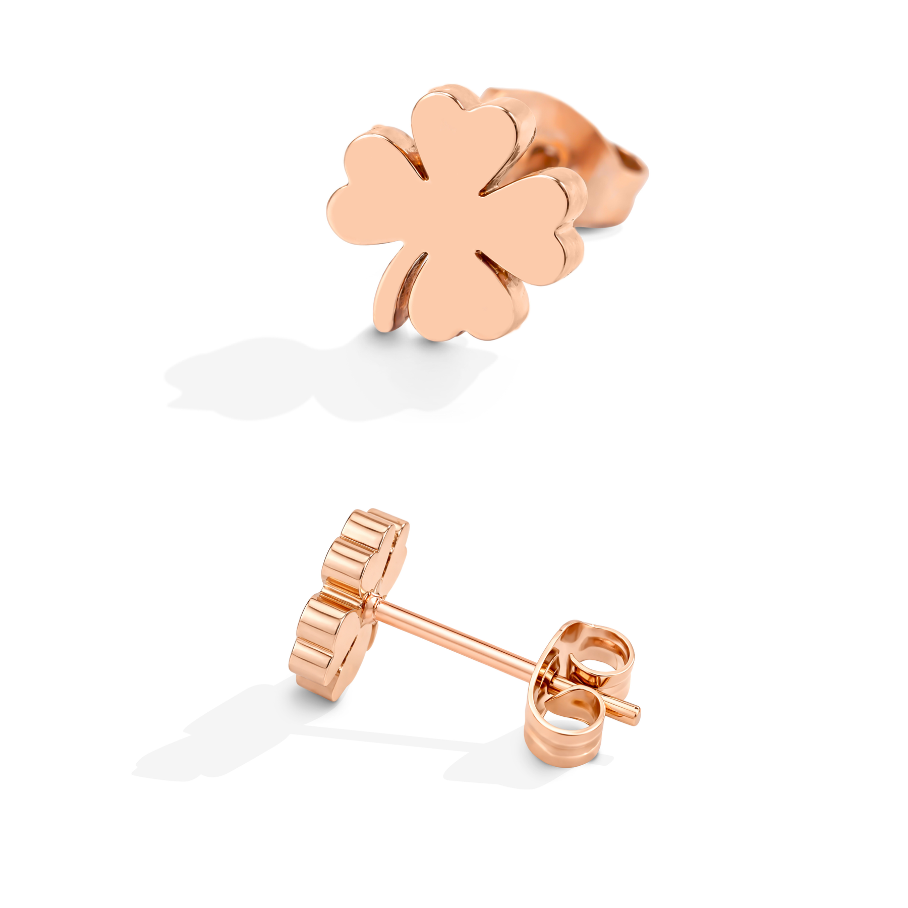 Elegantes aretes de acero inoxidable de calidad 316L pulida a mano, con sellado e-coating para una mejor protección del color. Cuenta con un estilo simbólico y contemporáneo, destacando por su acabado pulido. Presentan la silueta de un trébol de cuatro hoojas presenta un acabado de metal liso y altamente pulido.