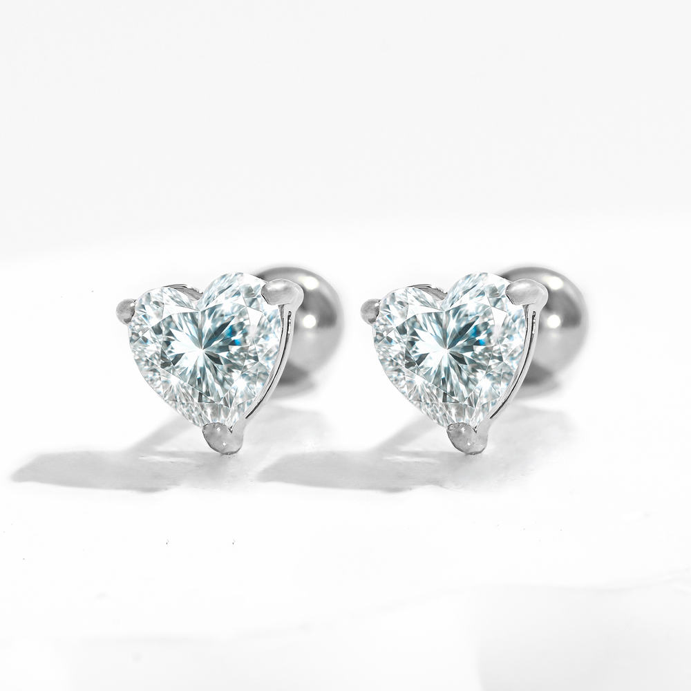 Aretes Acero en Baño de Oro Blanco Mini Heart