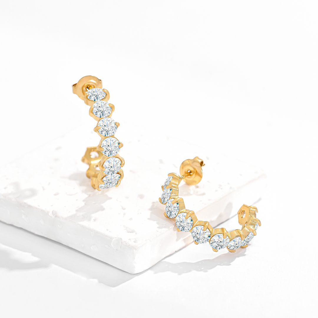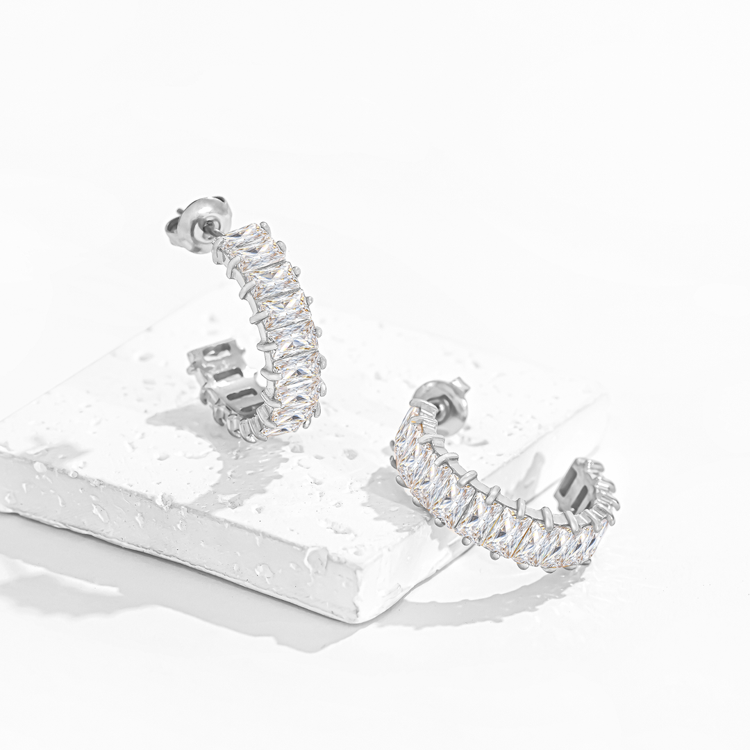 Aretes Acero en Baño de Oro Blanco Radiant Heart
